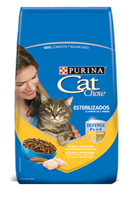 El nuevo Purina® Cat Chow® Esterilizados® con Defense Plus ofrece el balance adecuado que tu gato necesita después de ser esterilizado, ayudando al mantenimiento de su salud por toda su vida.