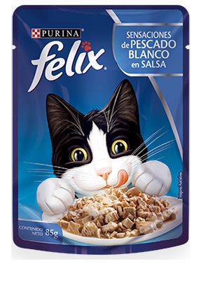 Delicioso alimento húmedo completo y balanceado para gatos adultos, compuesto por trocitos de pescado blanco en salsa, para deleitar hasta al paladar gatuno más exigente. La ración promedio es de 3 sobres de 85 g por cada 4 kg de peso de su gato adulto, repartido en 2 o más comidas. Las necesidades individuales pueden variar y deben ser ajustadas para mantener el peso saludable de su gato.
